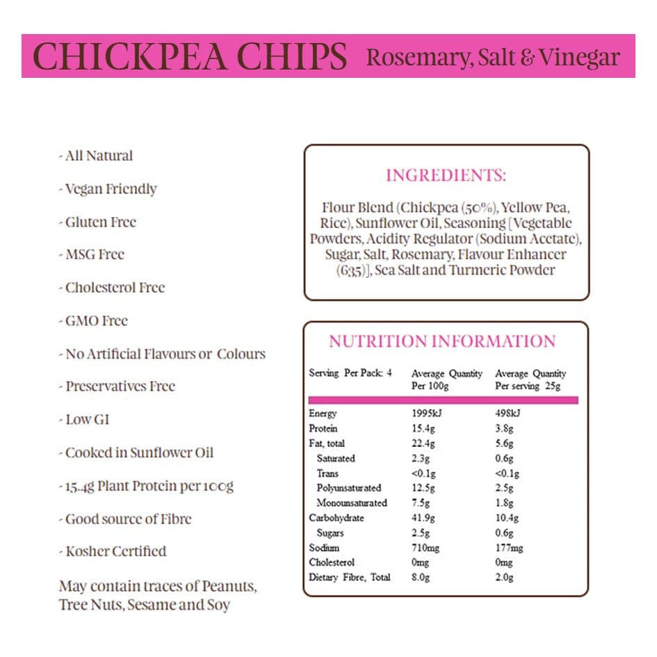Bains Wholefoods Chickpea Chips Rosemary, Salt & Vinegar 100g