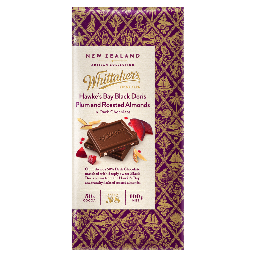 Enjoy the rich, fruity crunch of Whittaker’s Artisan Plums & Roasted Almonds, flavour and texture working together in every bite.