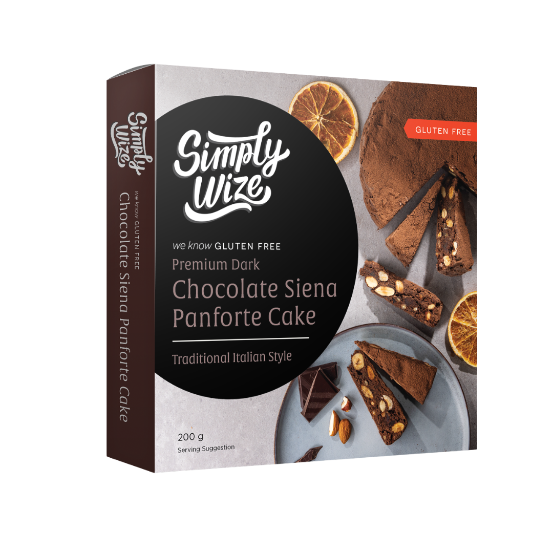 Simply Wize Gluten Free Chocolate Sienna Panforte Cake combines premium dark chocolate with a rich blend of nuts and fruit, creating an authentic Italian-style Sienna cake that delights the palate.