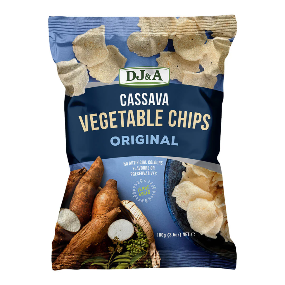 Savour a snack that is light and crunchy with DJ & A Cassava Vegetable Chips Original.