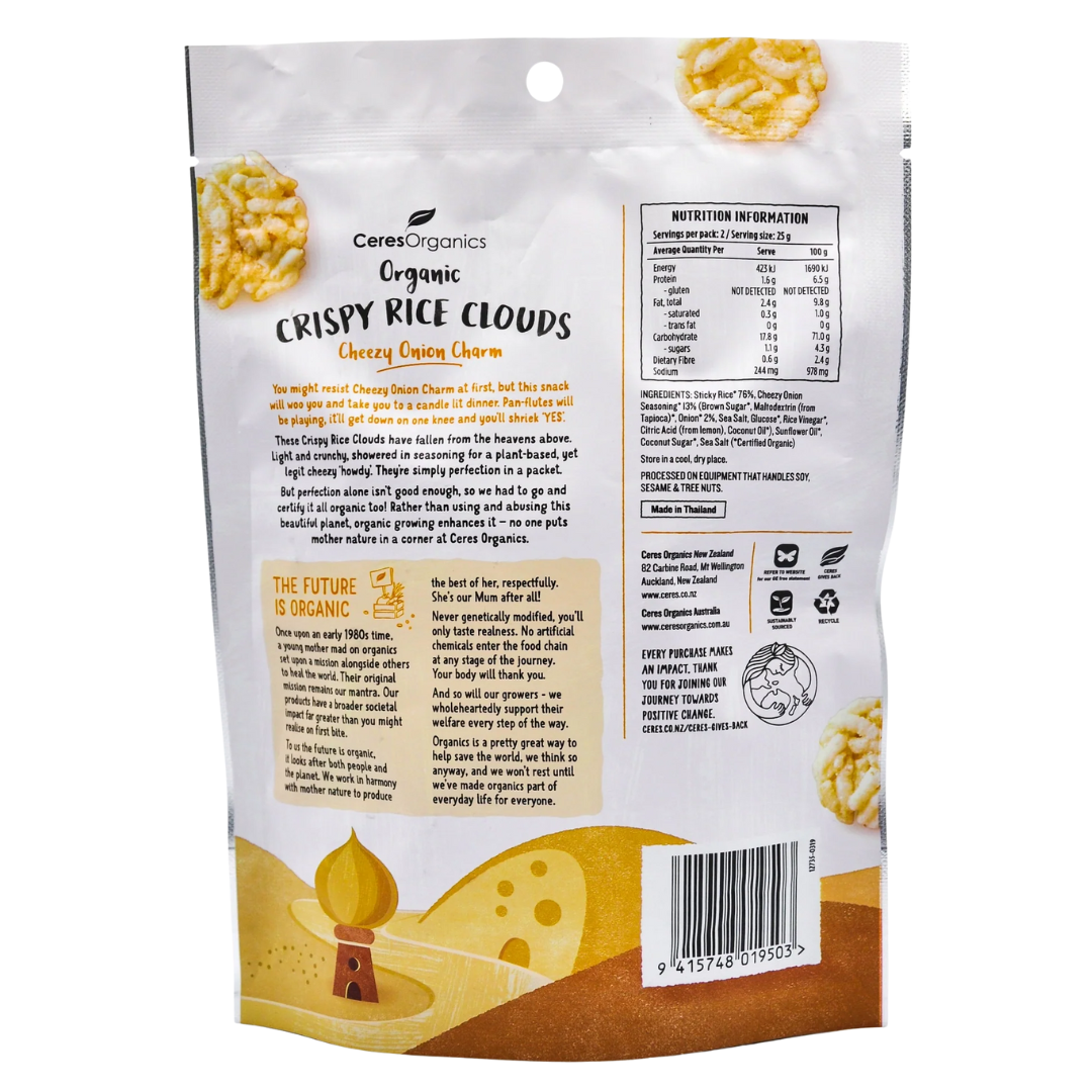 Ceres Organics Cheezy Onion Charm Crispy Rice Clouds 50g