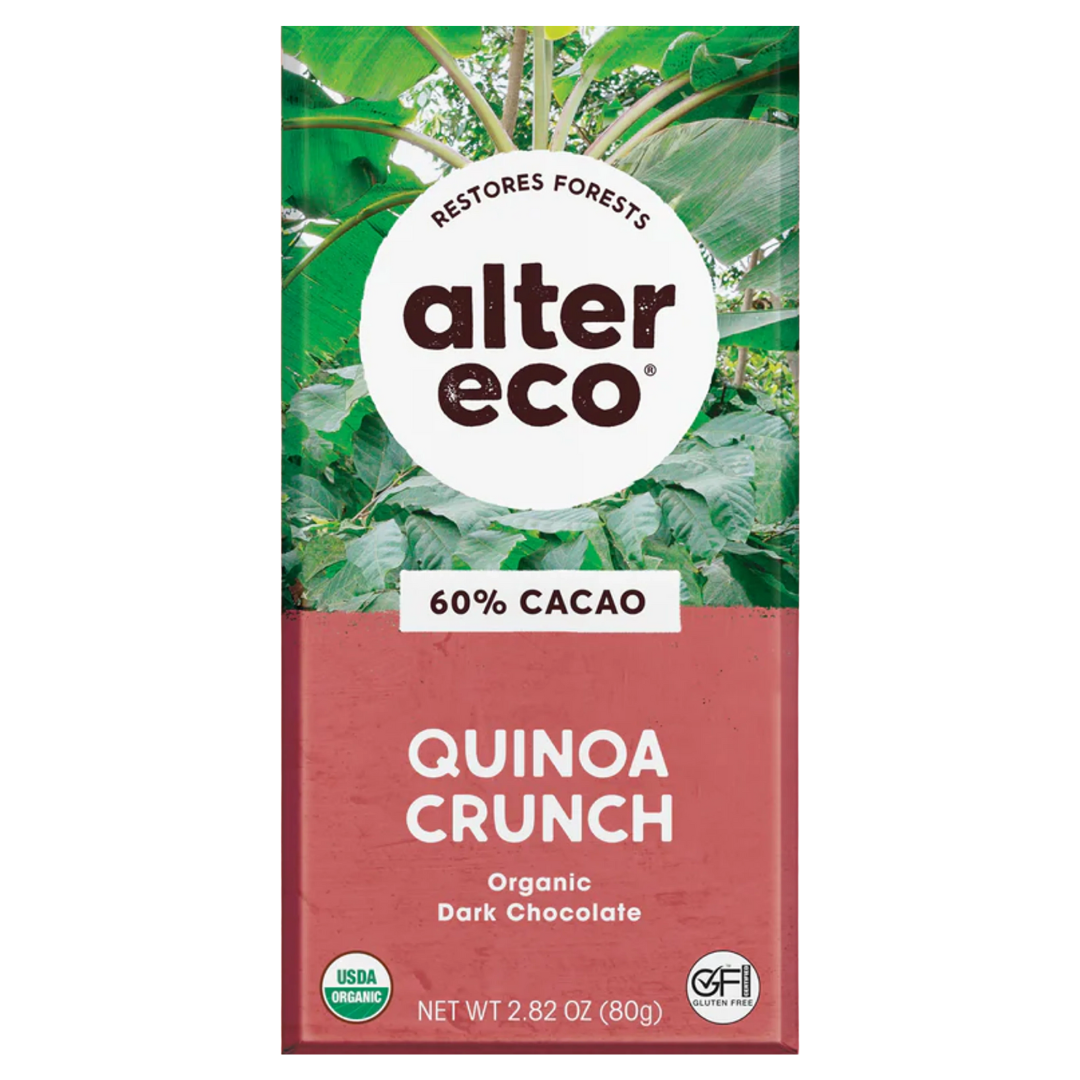 Indulge in the harmonious crunch of ancient grains and rich chocolate with Alter Eco’s Deep Dark Quinoa Crunch bar. Featuring 70% Ecuadorian dark chocolate infused with pops of crispy puffed quinoa, this luxurious bar delivers a satisfying texture and a subtle nutty flavor. Crafted with certified organic, Fair Trade ingredients and wrapped in eco-conscious packaging, it’s a mindful indulgence you can feel good about.