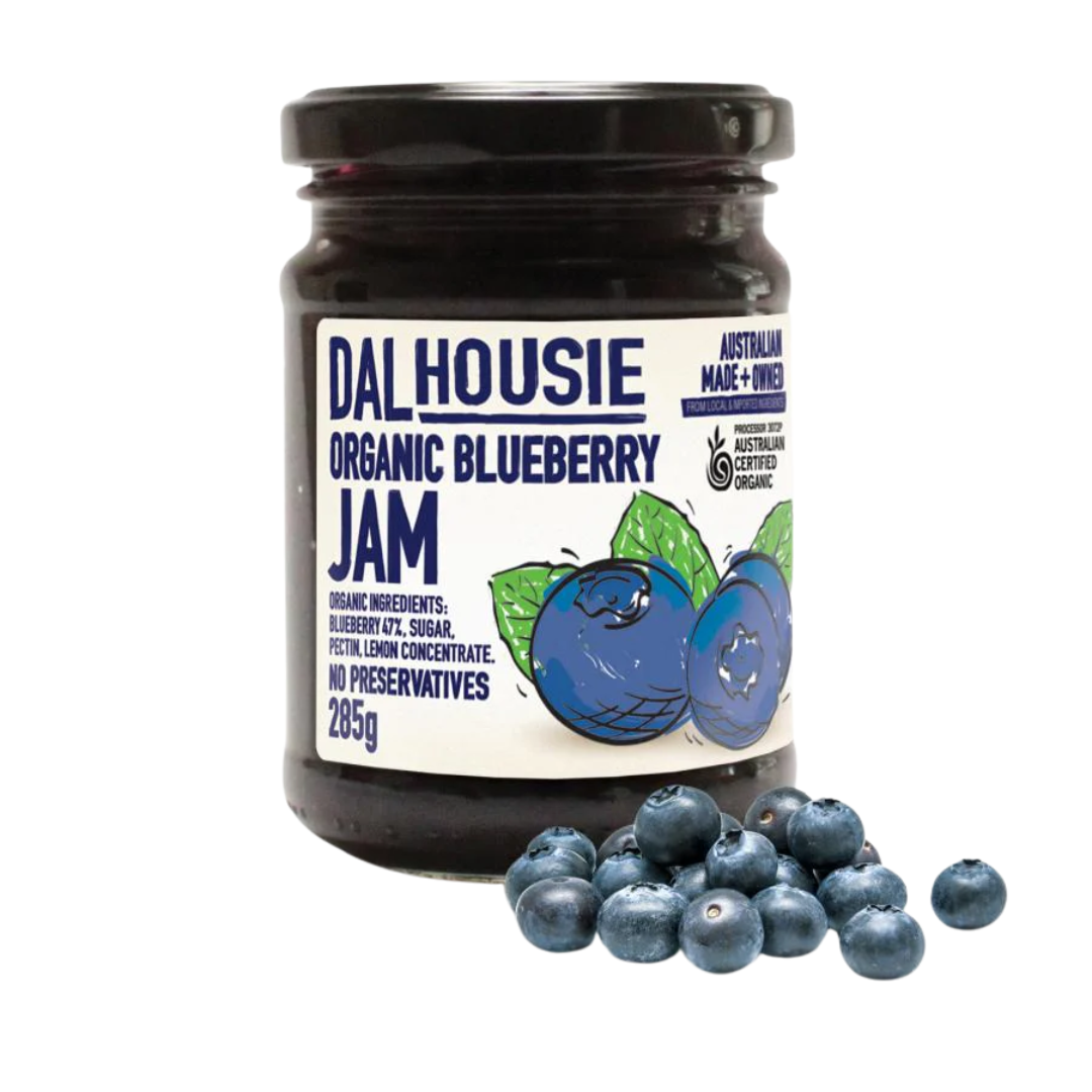 Savor the vibrant flavour of summer with Dalhousie Organic Blueberry Jam. Crafted from plump, handpicked organic blueberries and a touch of natural sweetener, this spread delivers rich berry goodness in every spoonful. Perfect on toast, stirred into yogurt, or as a sweet companion to cheese platters, it’s a versatile pantry staple full of wholesome, fruity delight.