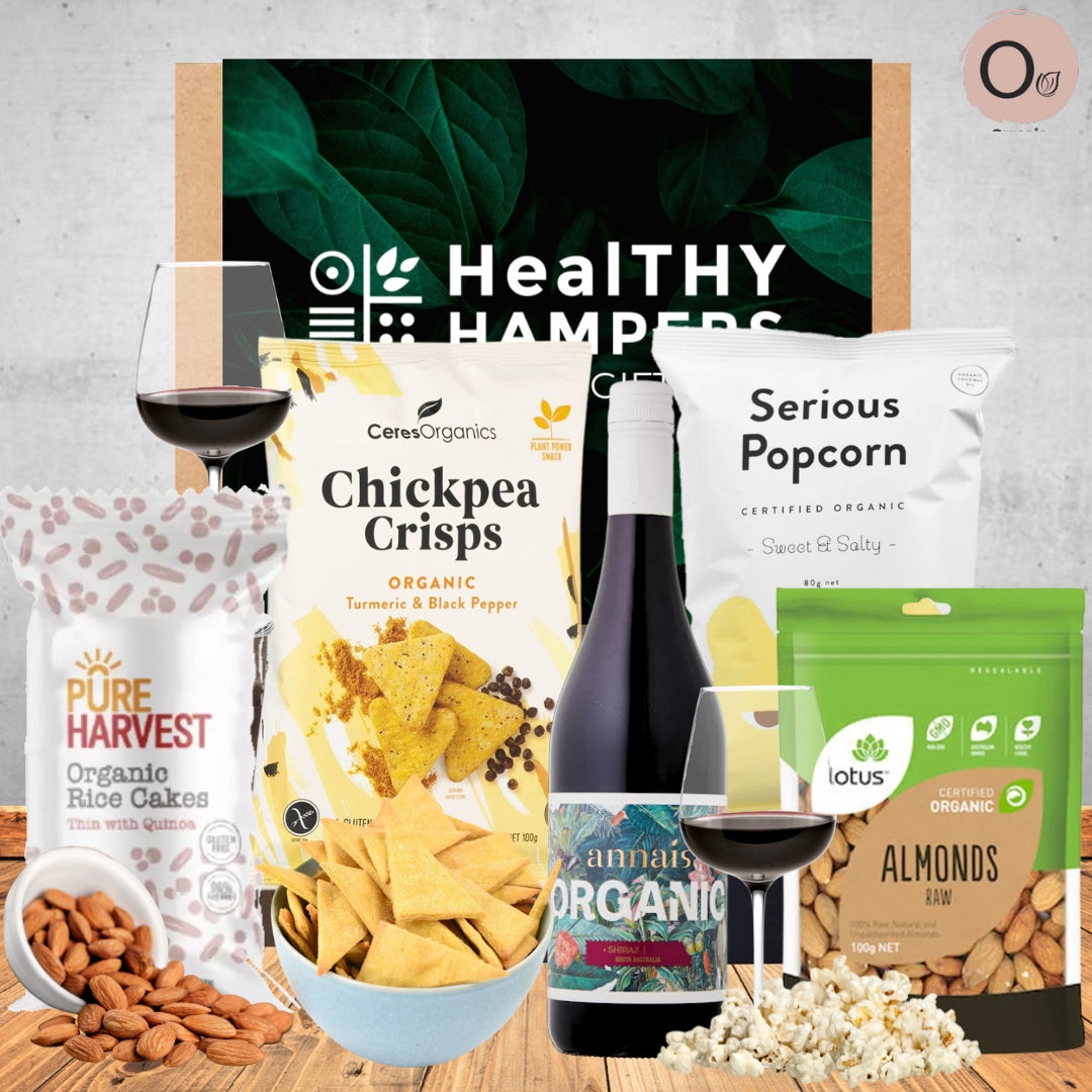 The Annais Organic Red Wine Hamper is the perfect gift for any wine lover. It features a bold Annais Organic Shiraz, full of rich, smooth flavours that pair beautifully with the included treats. Enjoy Serious Food Co's Sweet & Salty Popcorn for the perfect crunchy bite, and Ceres Organics’ Turmeric & Black Pepper Chickpea Crisps for a zesty twist. All the goodies are hand-picked to complement the wine, offering an unforgettable tasting experience. Ideal for a special occasion or just a relaxed evening, this hamper’s got you covered with its delightful balance of organic goodness.