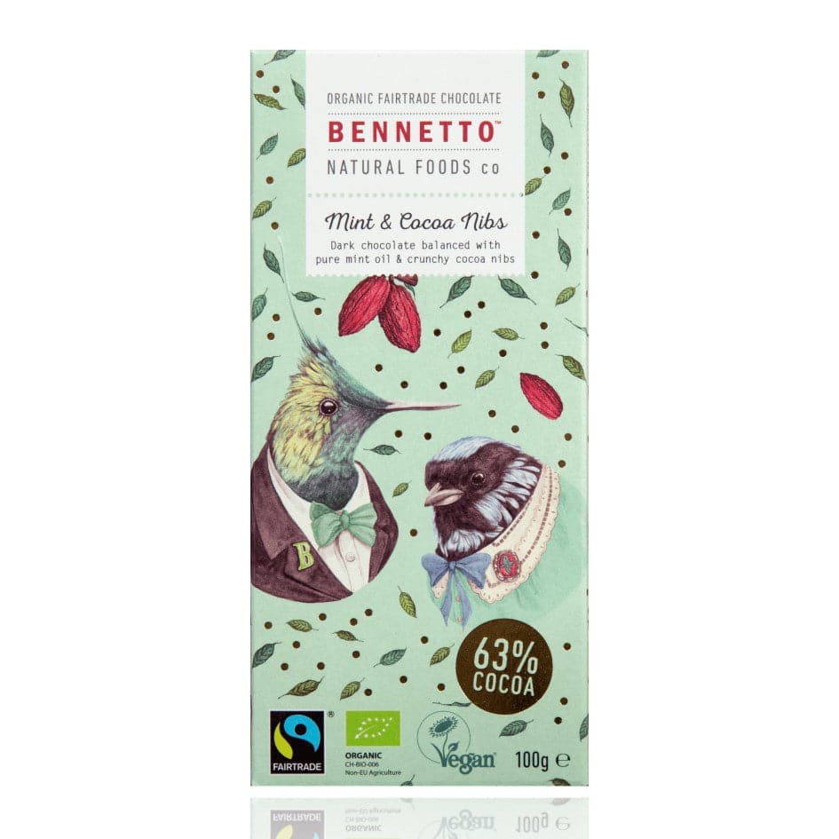 Bennetto Mint & Cocoa Nibs Chocolate 100g