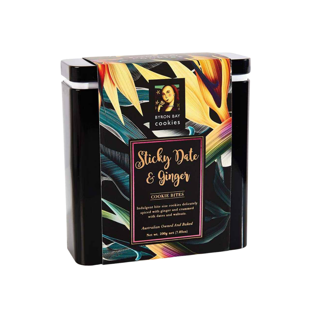 BYRON BAY COOKIES STICKY DATE GINGER GIFT TIN 200G