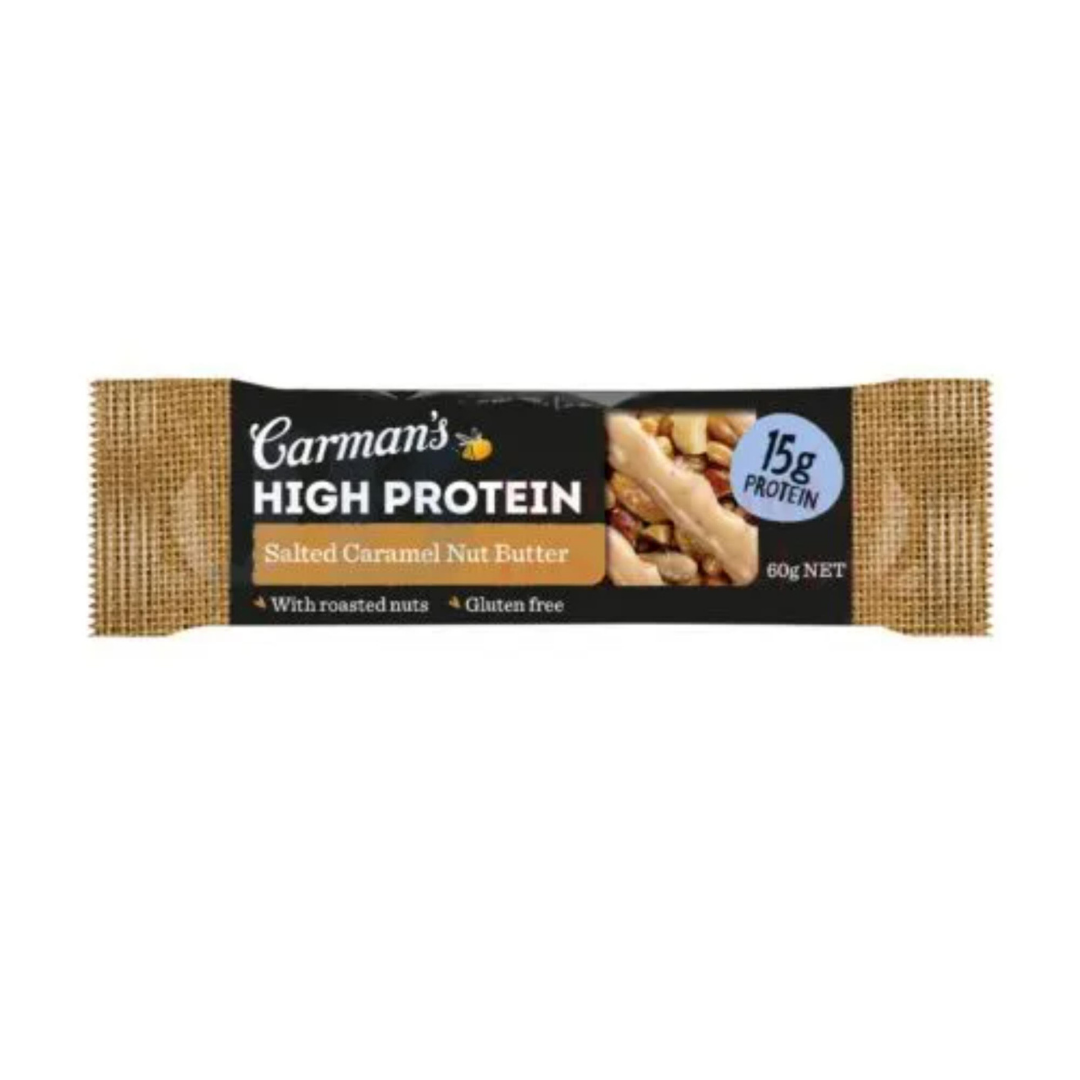 Purchase a Carton of 60g Carman's High Protein Bars Salted Caramel Nut Butter Wholesale | JB Metro Sydney.