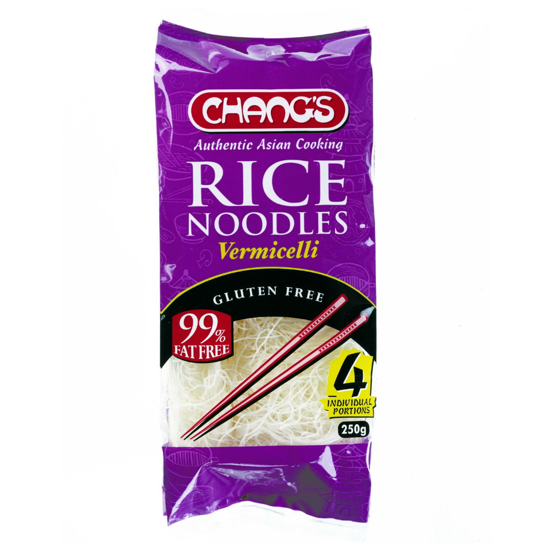 Rice noodles offer a tasty and light substitute for wheat noodles or spaghetti. Enjoy them warm or chilled alongside stir-fries, soups, or salads. Chang’s Rice Noodles are gluten-free, contain 99% less fat, and are free from artificial colors and flavors, conveniently divided into four separate servings.