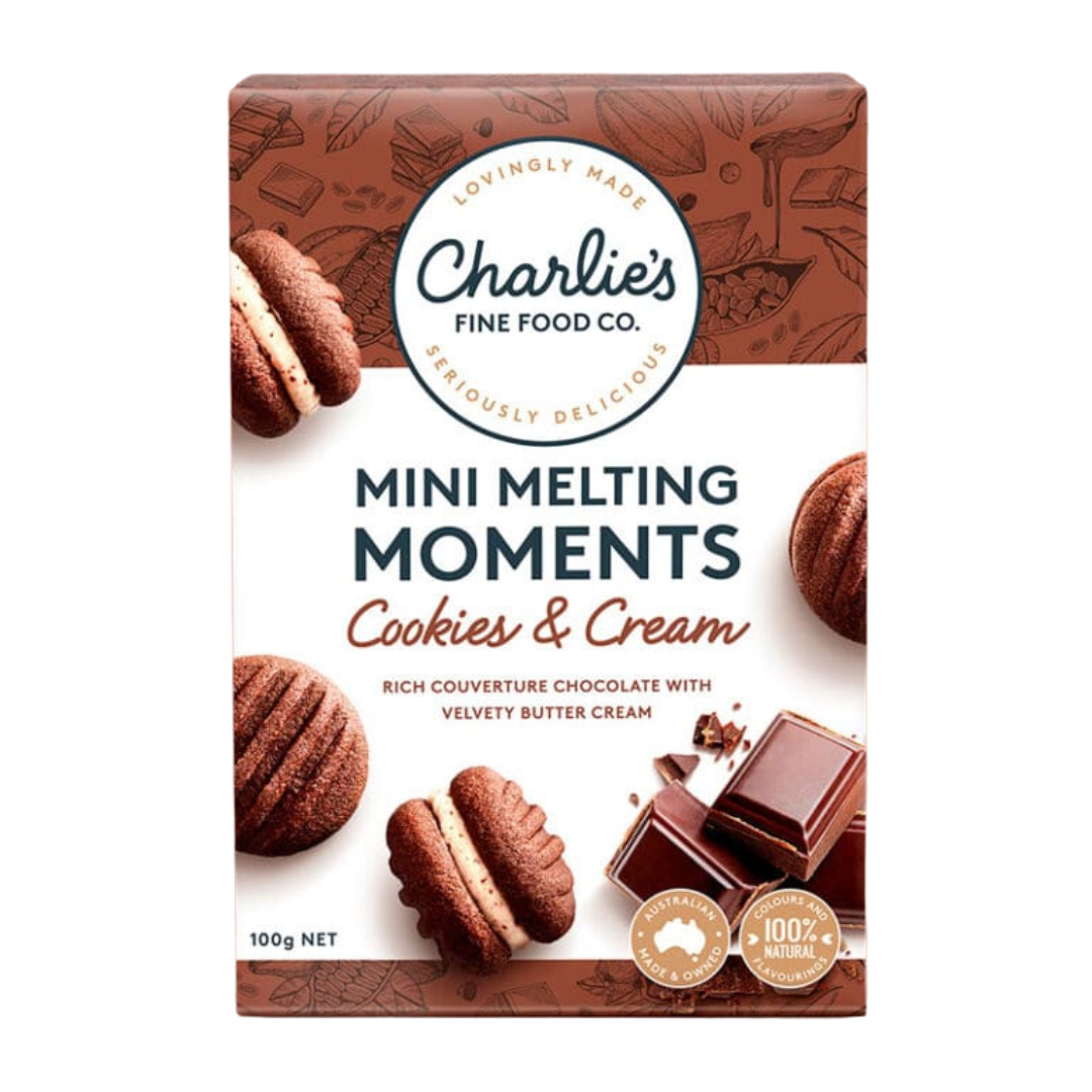 CHARLIE'S FINE FOODS COOKIES & CREAM MINI MELTING MOMENTS 100G