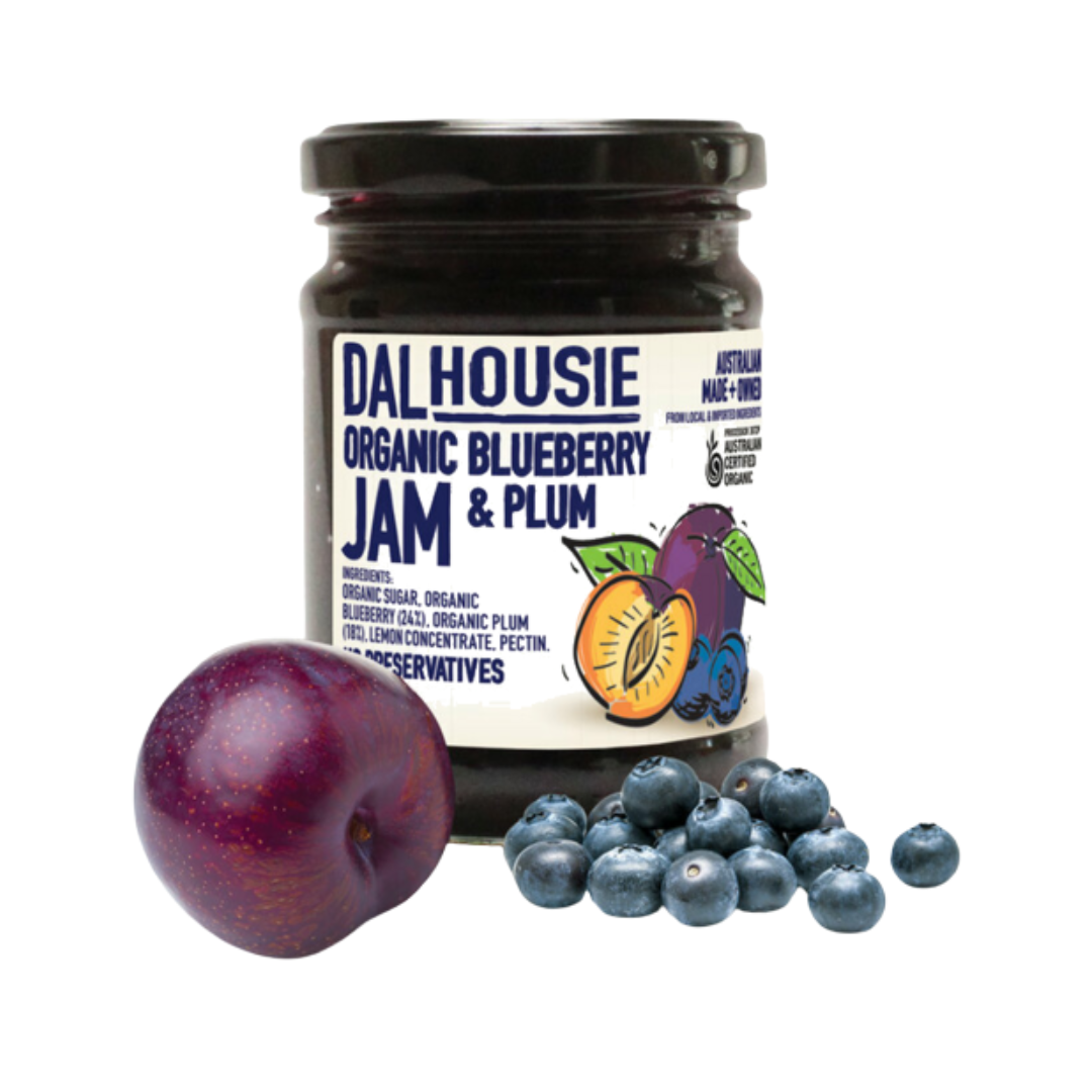 Dalhousie Organic Blueberry and Plum Jam 285G brings together the deep, comforting flavours of blueberries and plums, creating a sweet and tangy jam that's perfect for spreading on toast, mixing into oatmeal, or adding to baked goods.