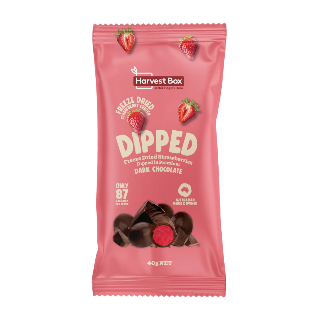 Harvest Box Freeze Dried Strawberry 40g delivers the vibrant flavour of ripe strawberries in a crisp, airy snack that tastes as good as fresh fruit. The berries are freeze dried in a mild manner so as not to destroy the natural sweetness, colour and nutrients of the berries - you can snack them or even use them to give your meals a fruity flavour.