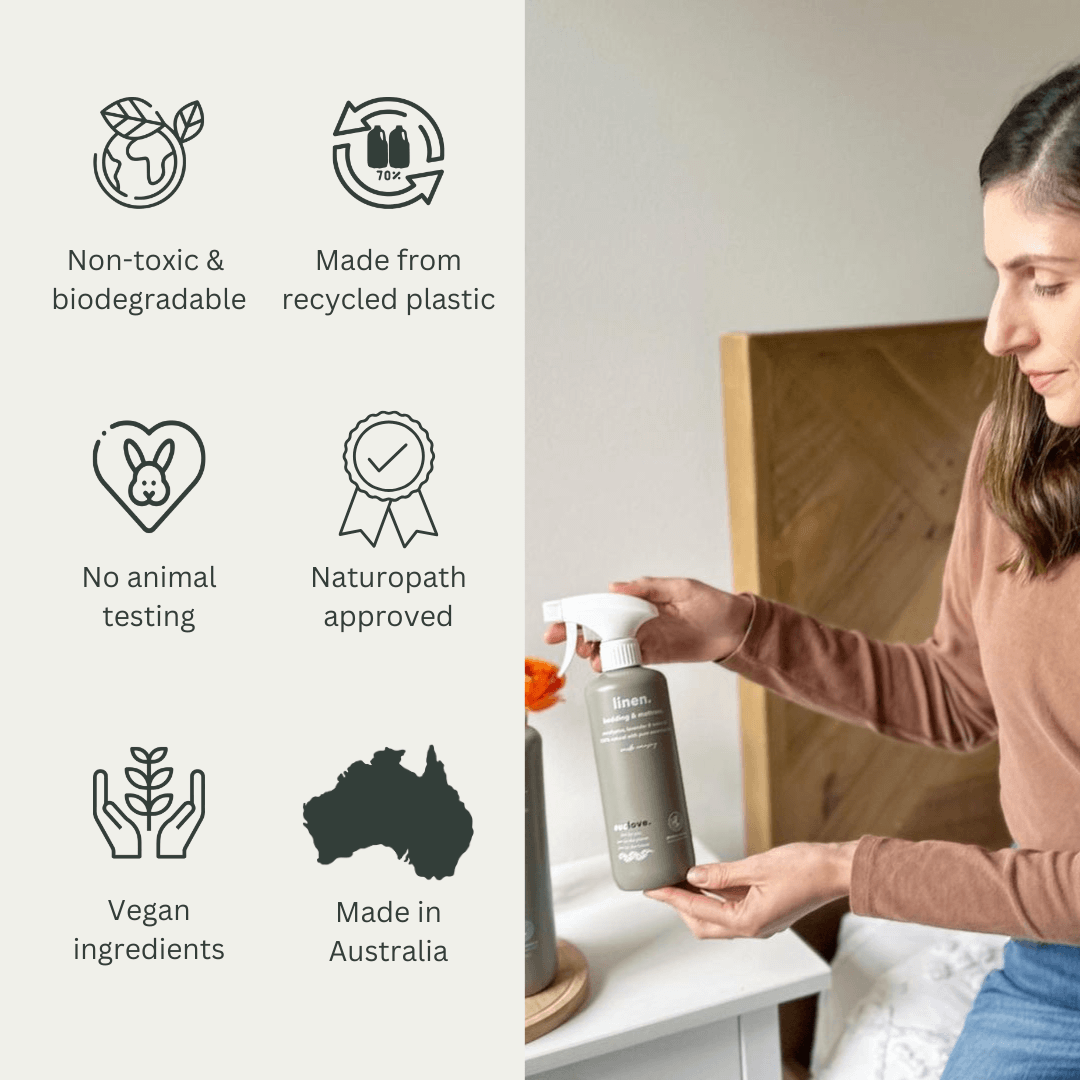 - CLEANSE & SANITISE BED LINEN: Helps to cleanse and disinfect linen in between washes with a powerful blend of pure essential oils, including Indian Neem and Australian Eucalyptus, known for their traditional disinfectant and bug-fighting properties.