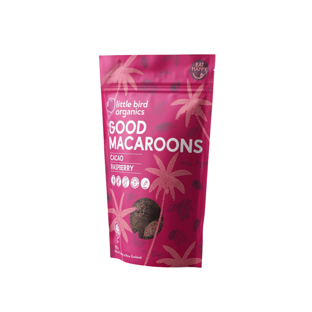 Little Bird Organics Good Macaroons - Cacao + Raspberry 125g