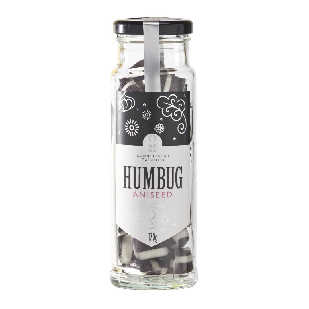 Crafted with precision, these hand-made humbugs and rock candies are presented in elegant glass jars, showcasing a refined confectionery experience.