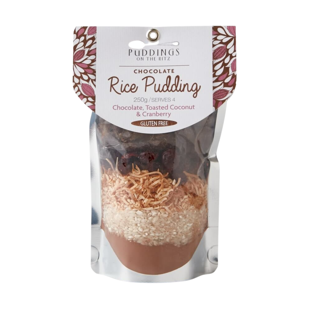 This mix provides all the ingredients required to create rich chocolate rice puddings in your own kitchen. It is gluten-free.