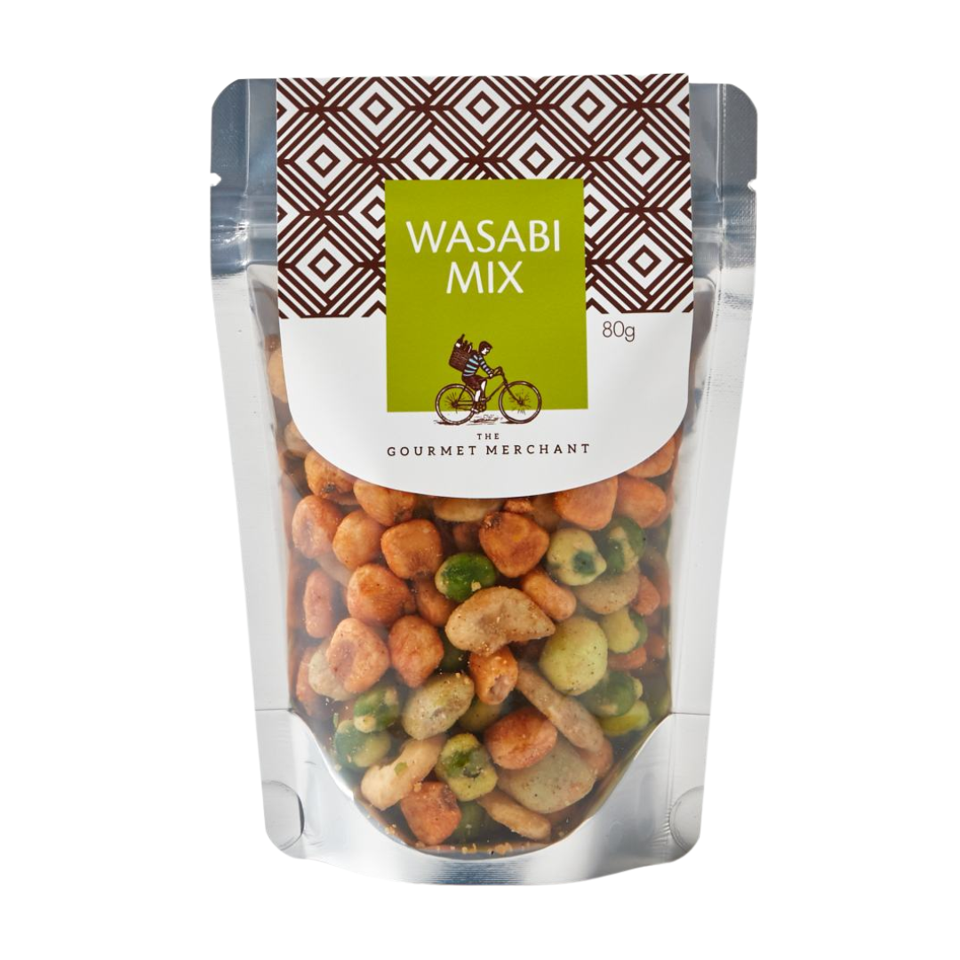 This vibrant wasabi snack mix comes in an elegant stand-up pouch, making it an attractive addition to your kitchen and effortless to share. Perfect for adding a bold kick to any gathering.