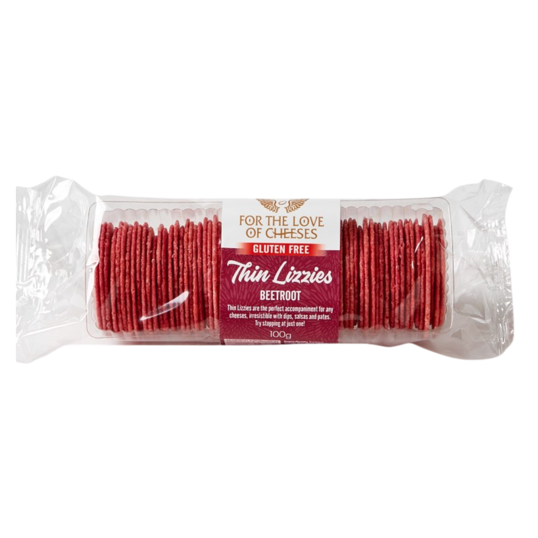 These gluten-free beetroot wafer crackers come in a convenient 100g pack. Ideal for pairing with dips, cheeses, pâtés, and fruit preserves, they offer a sophisticated snacking option.