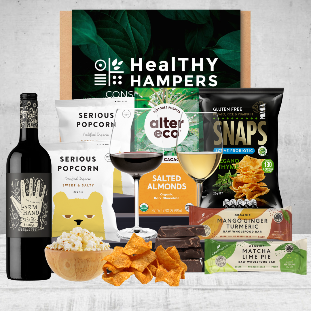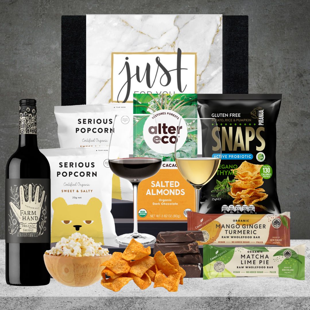 This Vegan Friendly hamper is a top pick for any occasion! Choose from a delicious Shiraz, a crisp Semillon Sauvignon Blanc, or treat them to both—sourced from Australia’s own Farm Hand. It’s packed with tasty vegan snacks, so it’s perfect for your vegan mates, family, work crew or anyone who loves good food and wine. It all comes beautifully packed in a premium gift box, wrapped in stylish tissue and finished with a lovely sleeve. Plus, you’ll get a free “For You” gift card with your personal message printed inside. So easy to gift, and sure to impress!