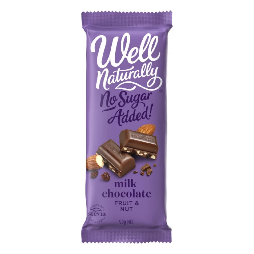 Well Naturally S/F Fruit & Nut Milk Chocolate Block 90g