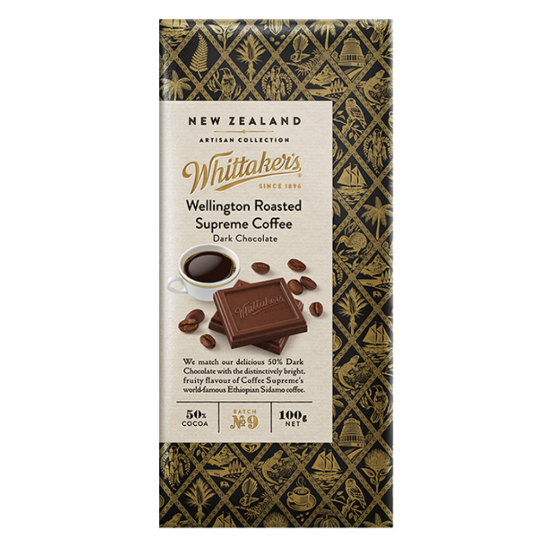 Get ready to savour the warm, roasted character of Whittaker’s Artisan Coffee — rich flavour in every square.